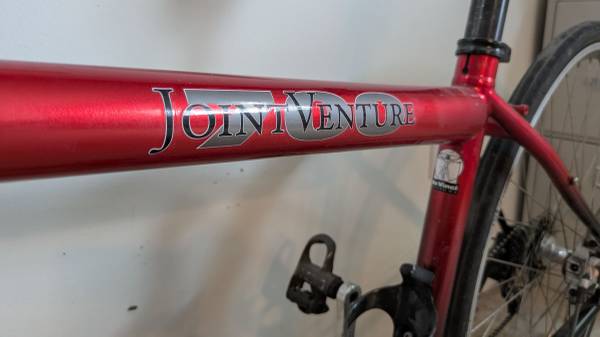 Nice and in good shape DaVinci Designs Joint Venture tandem. This is a great starter tandem as the cranks can move independently. Also very nice to coast, get water, adjust something without both riders having to be synced. Rode it across Nebraska last year with no problems. Upgraded to Shimano 11 speed and compact crank for super efficient shifting. New tape, newish tires, sold w/o cages and pedals but can include.Fits ~6' and ~5'3";.