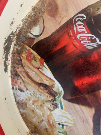 Hard to find Mexican serving tray with yummy Mexican food on one side and "Tome Coca-Cola" on the underside. Condition in pictures. In Longmont, CO. $40 obo
