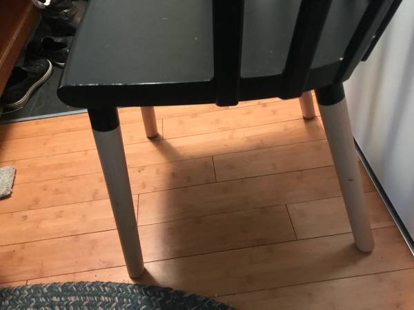 one chair with wooden leg and plastic DAW Shell on sitting area and back for 25 (cash only). office chair; dinning chair; living room chair; outdoor chair