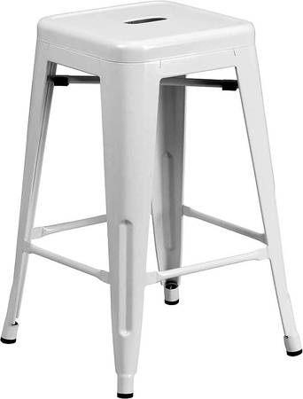 four white metal stools indoor-outdoor counter height stools each for 15 (cash only). you can tall all four or one. the height of each bar stool is 24".
